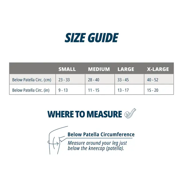 The PS3® Performance Patella Sleeve is designed to support the area around the kneecap during movement, using targeted compression zones above and below the patella. It offers a secure, low-profile fit that moves naturally with the knee instead of restricting it. The breathable construction and seamless design help keep it comfortable during long wear, whether you’re training, walking, or spending long hours on your feet.